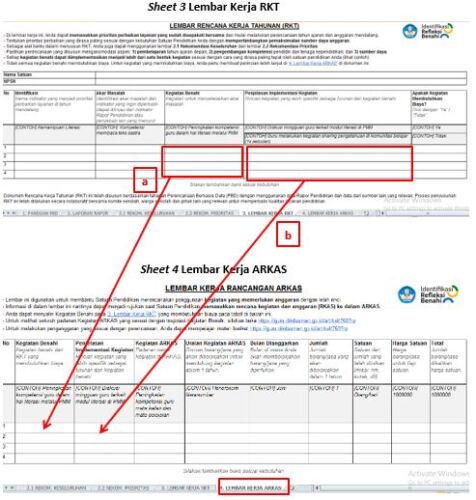 b) Masukkan/salin uraian Penjelasan Implementasi kegiatan yang ada dalam kolom Penjelasan Implementasi kegiatan pada sheet 3 Lembar Kerja RKT ke dalam kolom Penjelasan Implementasi kegiatan yang terdapat dalam sheet 4 Lembar Kerja ARKAS.