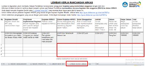 - Buka unduhan laporan rapor pendidikan dan pilih sheet 4 Lembar Kerja ARKAS pada dokumen.