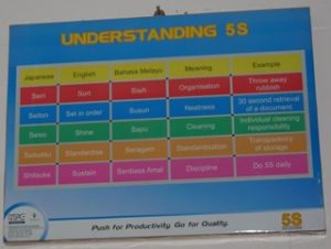 Dalam suatu kunjungan ke Malaysia beberapa waktu lalu, saya berkesempatan mempelajari penerapan 5S di sekolah. Salah satu sekolah yang saya kunjungi adalah SMK (Sekolah Menengah Kebangsaan) Petra Jaya di Kuching, Sarawak. Program 5S telah diterapkan di sekolah itu dalam mewujudkan budaya kerja yang efektif dan efisien.