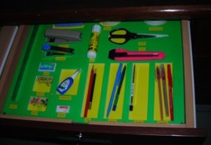Pemberian indikasi atau penanda barang dimaksudkan agar mudah dalam menemukan barang. Dengan demikian, mengurangi pemborasan waktu dengan sibuk mondar-mandir mencari barang yang diperlukan. Bagi guru, wujud kegiatan Susun ini berurusan dengan penataan buku pelajaran, perangkat pembelajaran, alat penilaian, media pembelajaran, dan barang lainnya. Semua itu tertata rapi di atas meja, laci, maupun almari. Begitulah kenyataan yang saya lihat di ruang guru SMK Petra Jaya, Sarawak tampak bersih dan rapi.