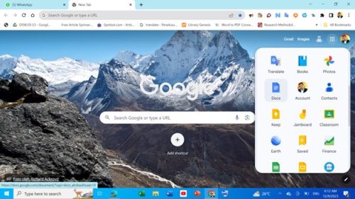 Gambar 1: Cara membuka Google Docs pada peramban Google Chrome.
