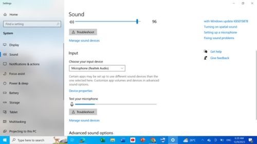 Gambar 2: Melakukan pengecekan fungsi mikrofon pada menu Sound Setting di laptop.