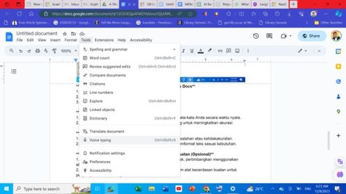 Gambar 3: Memunculkan menu Menemu (Menulis dengan mulut/suara  atau Voice Typing)