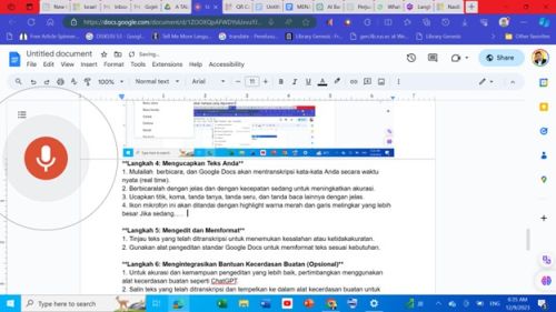 Dalam era di mana teknologi semakin mendominasi kehidupan sehari-hari, kemampuan untuk dengan cepat mengonversi ucapan menjadi teks dapat menjadi sebuah keahlian yang sangat berharga. Dalam tulisan ini, penulis akan membahas secara rinci langkah-langkah praktis untuk mencapai hal tersebut dengan menggunakan alat yang umum digunakan, yaitu Google Docs, dan memanfaatkan bantuan kecerdasan buatan (AI) di laptop. Proses ini tidak hanya efisien untuk mentranskripsi pertemuan atau seminar, tetapi juga memberikan kemudahan dalam menciptakan catatan atau dokumen tertulis lainnya dengan lebih cepat dan efektif.