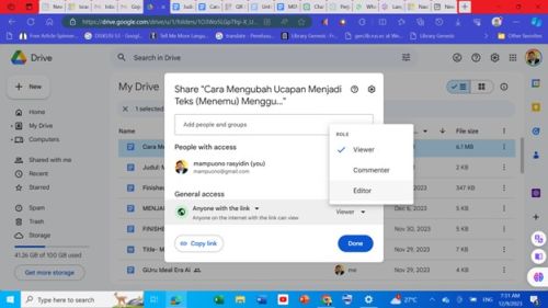 3. Berikan akses kepada pengguna lain misalnya sebagai viewer, commenter, atau editor,  sesuai dengan kebutuhan.