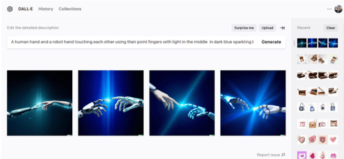 Gambar: Memanfaatkan kata-kata untuk menggambar tangan manusia dan robot dengan DALL-E (By: Dr. Mampuono, M.Kom)
