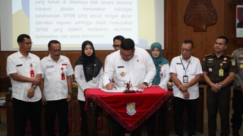 Penandatanganan Pakta Integritas dilakukan wakil bupati Purbalingga bersama Inspektorat Daerah serta pimpinan OPD diantaranya dari Dindikbud, Dinpendldukcapil, Dinsosdaldukkbp3a, Dinkominfo, Dinporapar. Turut serta mendampingi Forkompimda dari jajaran Kepolisian, TNI, Kejaksaan, Dewan Pendidikan serta BBPMP Provinsi Jawa Tengah mewakili Kemdikdasmen, pada di ruang operation room, kompleks Sekretariat Daerah Kabupaten Purbalingga, Rabu (30/4/25).