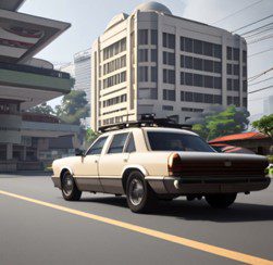 - Prompt 4: Sebuah mobil klasik sedang melintasi jalan raya yang ramai dengan latar belakang gedung-gedung tinggi dan modern di kota metropolitan yang sibuk.
