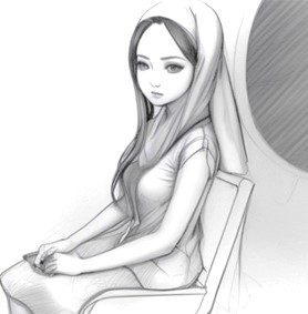 - Prompt 1: Sketsa seorang wanita sedang duduk di tengah-tengah taman dengan bunga-bunga di sekitarnya, mengenakan pakaian elegan dengan atasan lengan panjang dan kerudung.