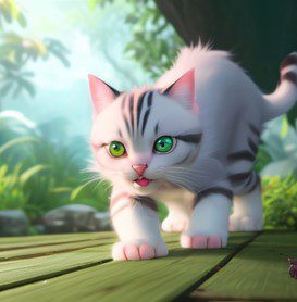 - Prompt 1: Gambar kucing dengan bulu loreng yang lucu sedang berlari-lari di sekitar taman dengan latar belakang pohon-pohon dan bunga-bunga yang indah.