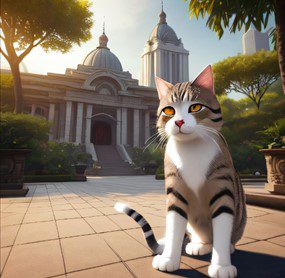- Prompt 4: Gambar kucing yang lincah sedang berlari-lari di sekitar taman dengan latar belakang pemandangan kota metropolitan yang indah dengan gedung-gedung tinggi dan jalan-jalan yang ramai.