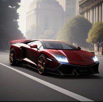 - Prompt 1: Gambar Sebuah mobil sedan lamborgini sedang melaju di jalan raya yang ramai dengan latar belakang gedung-gedung perkantoran di kota metropolitan.